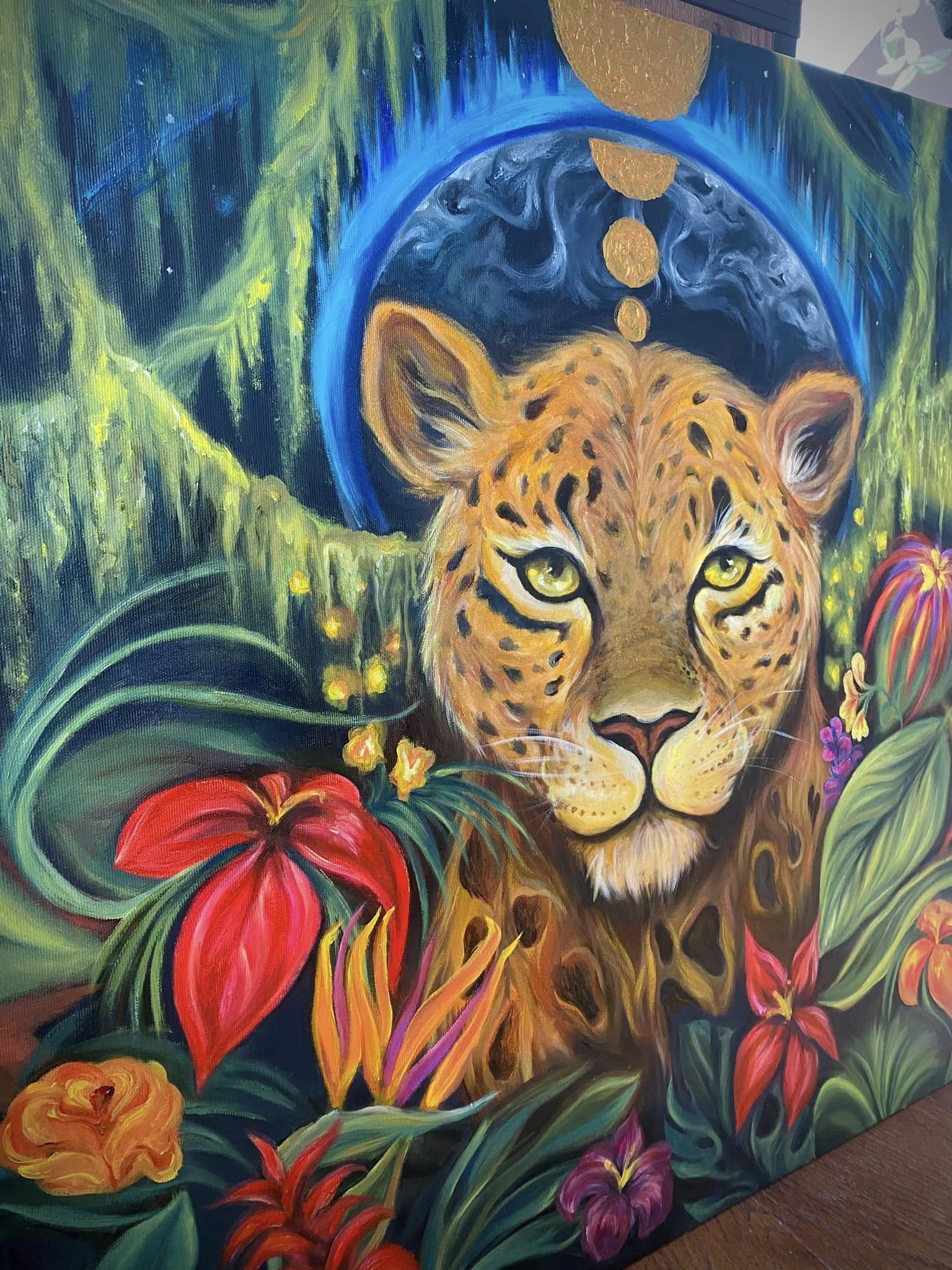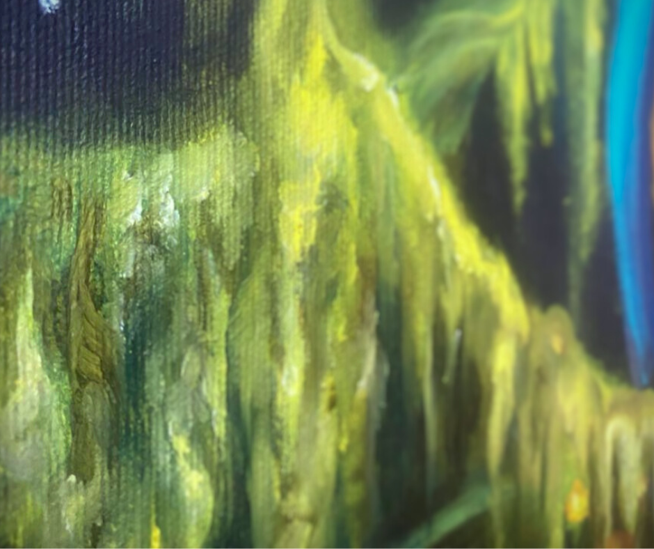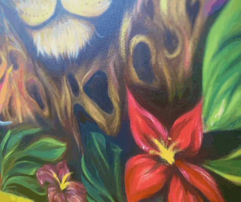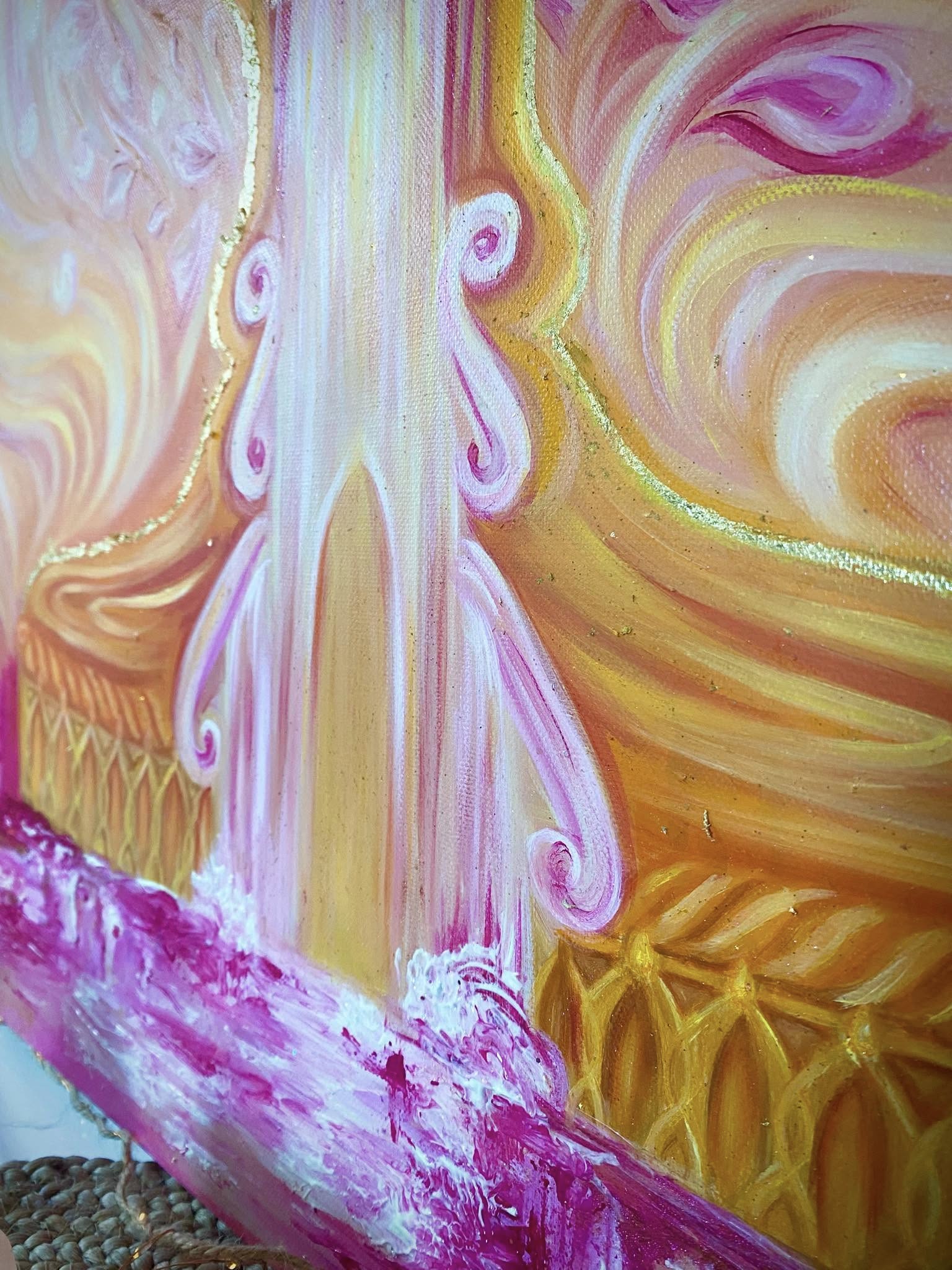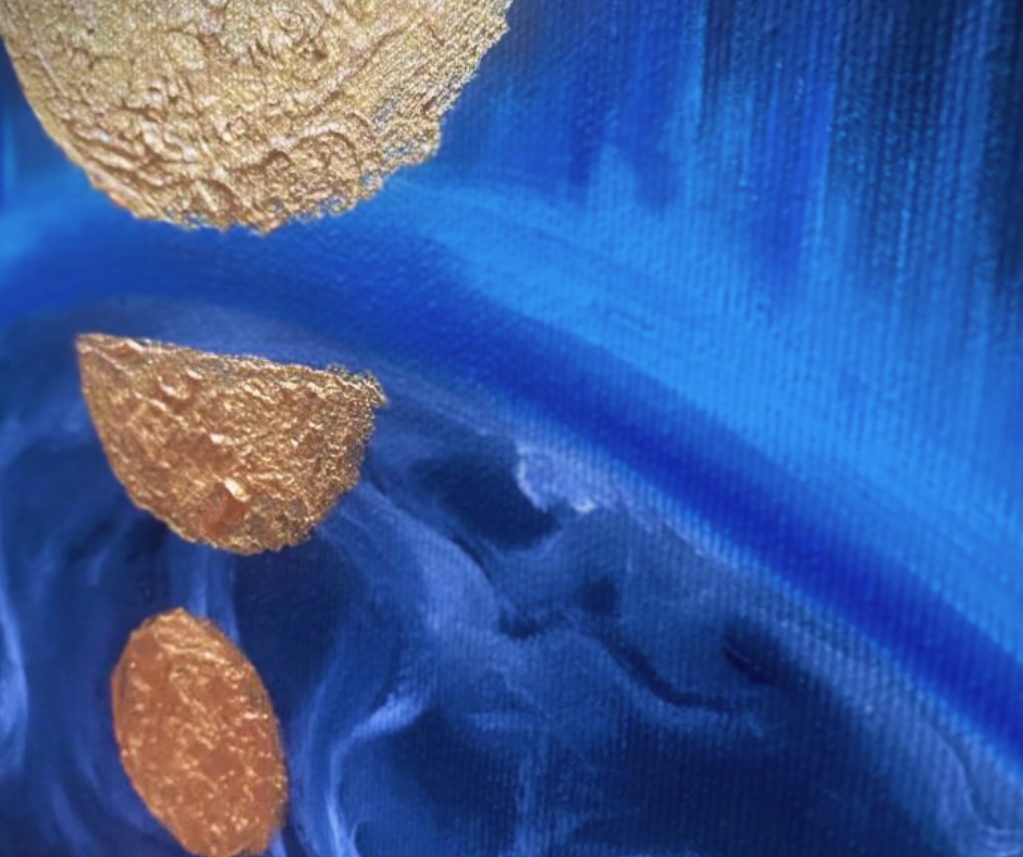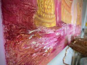 - 80x80 cm - olejomalba s plátkovým zlatem a glitry na zarámovaném plátně -